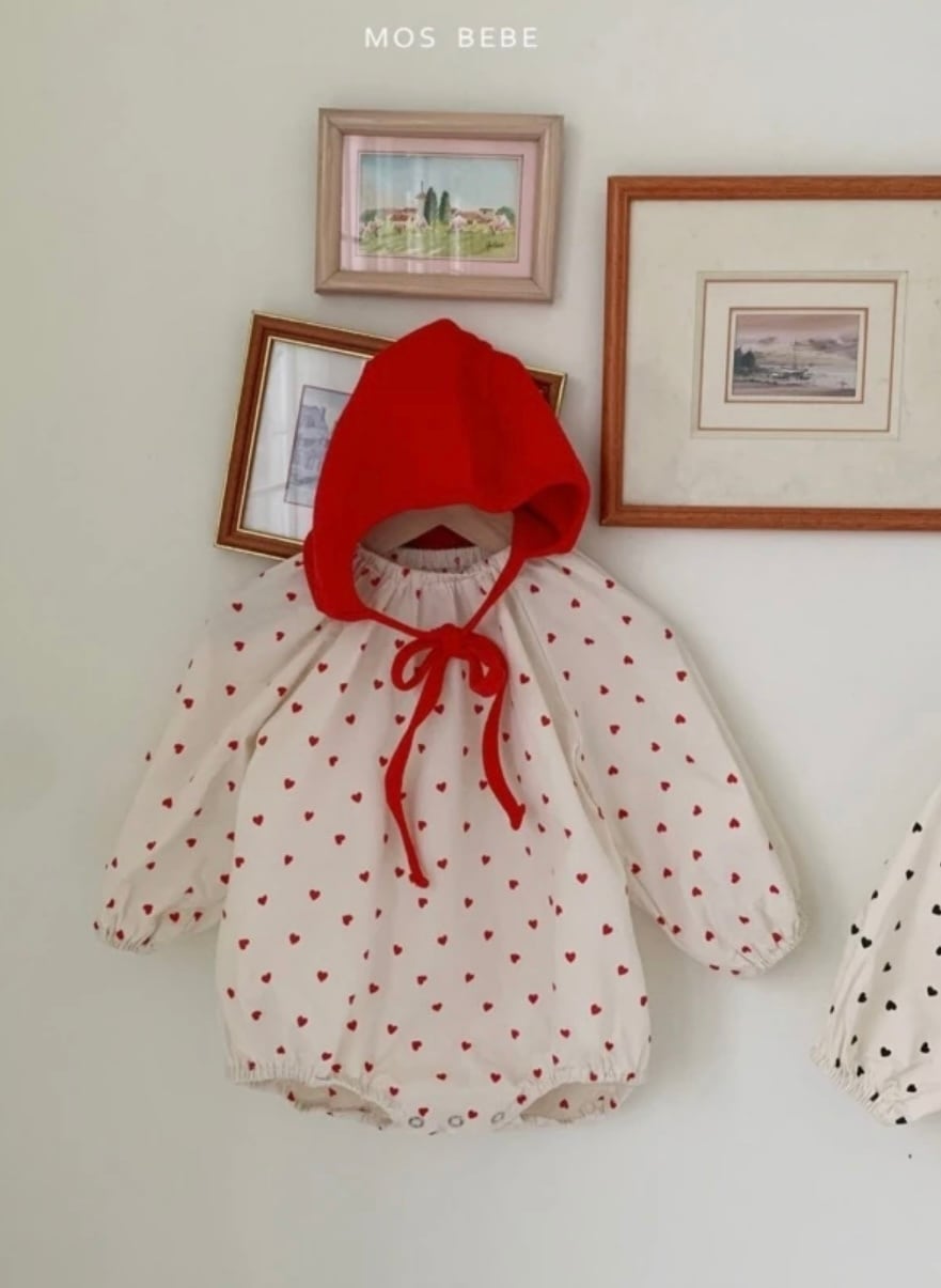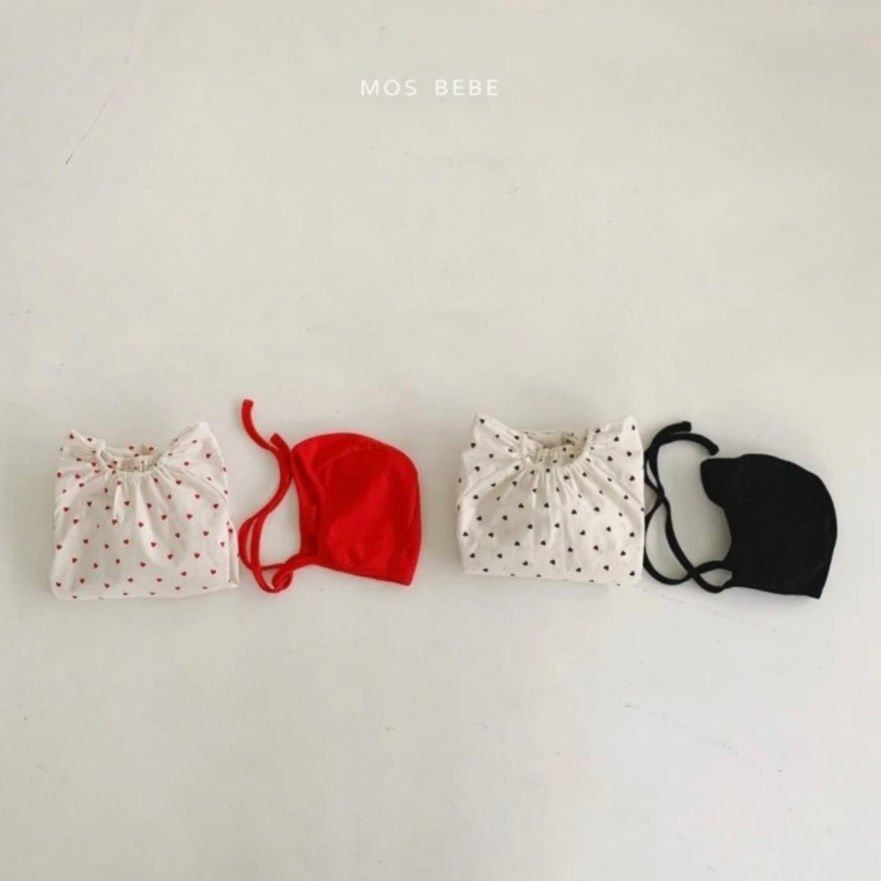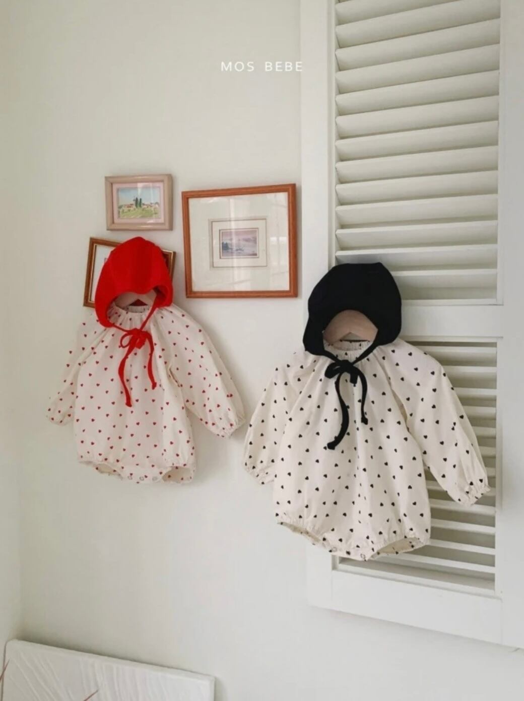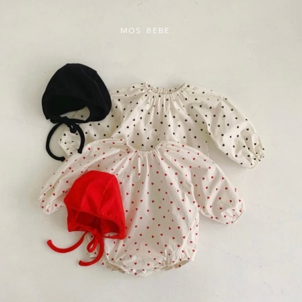 即納【mos bebe】ハート柄ロンパース(ボンネットset) M(8-16m)