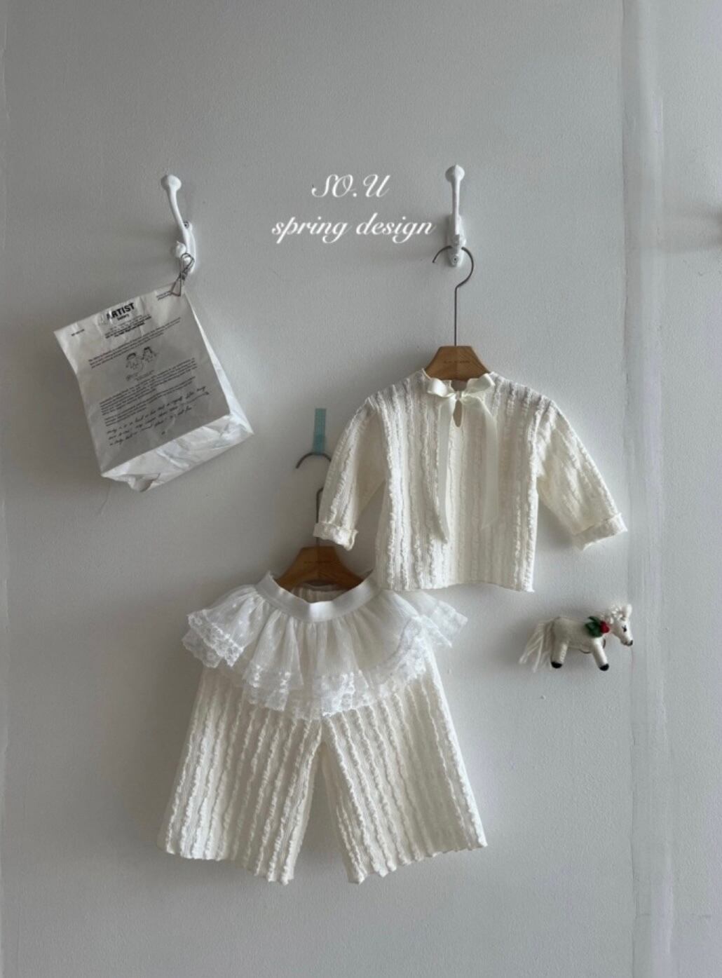 後ろのリボンがワンポイントになっていて女の子らしさ満点のセットアップ♡