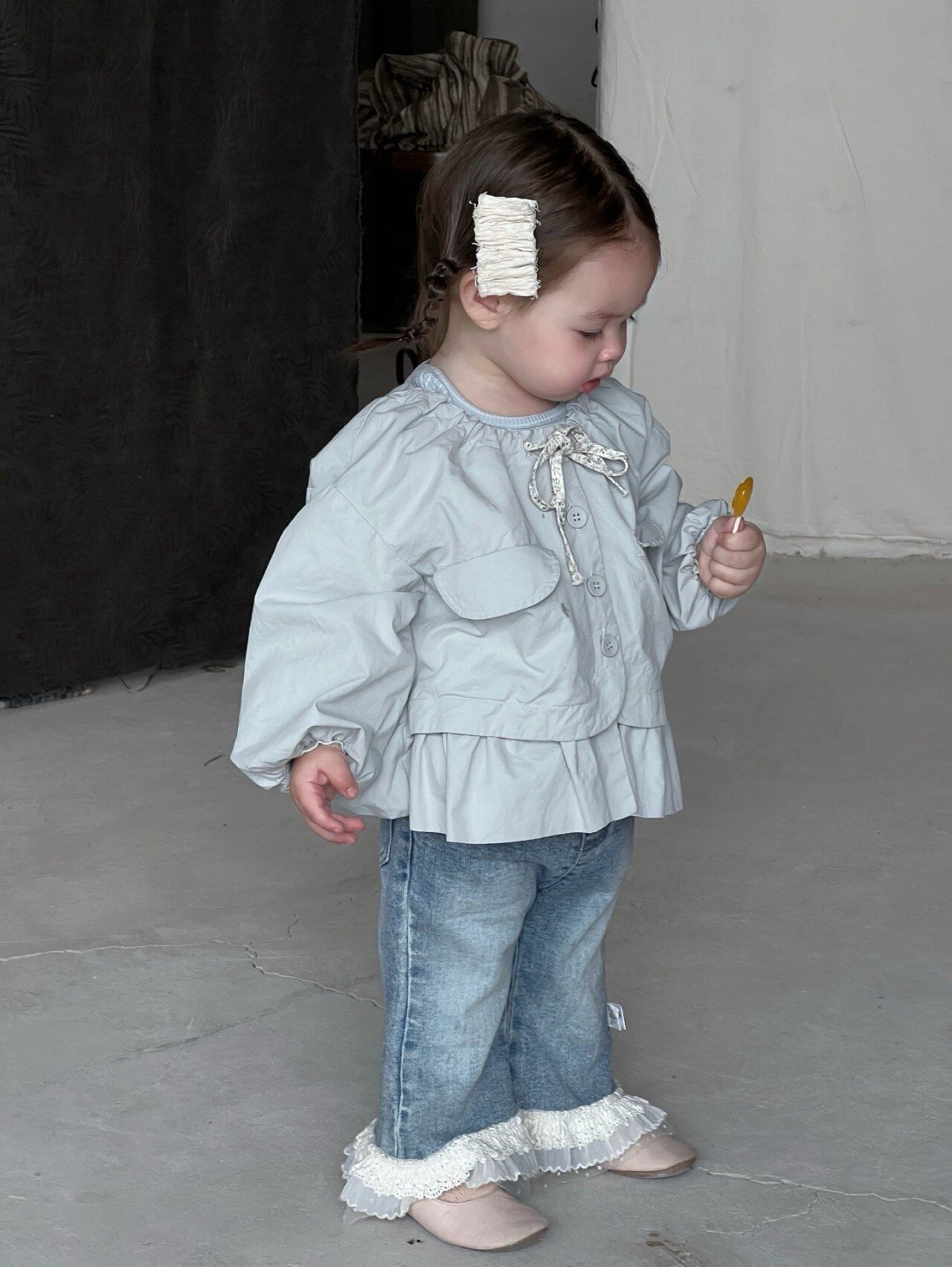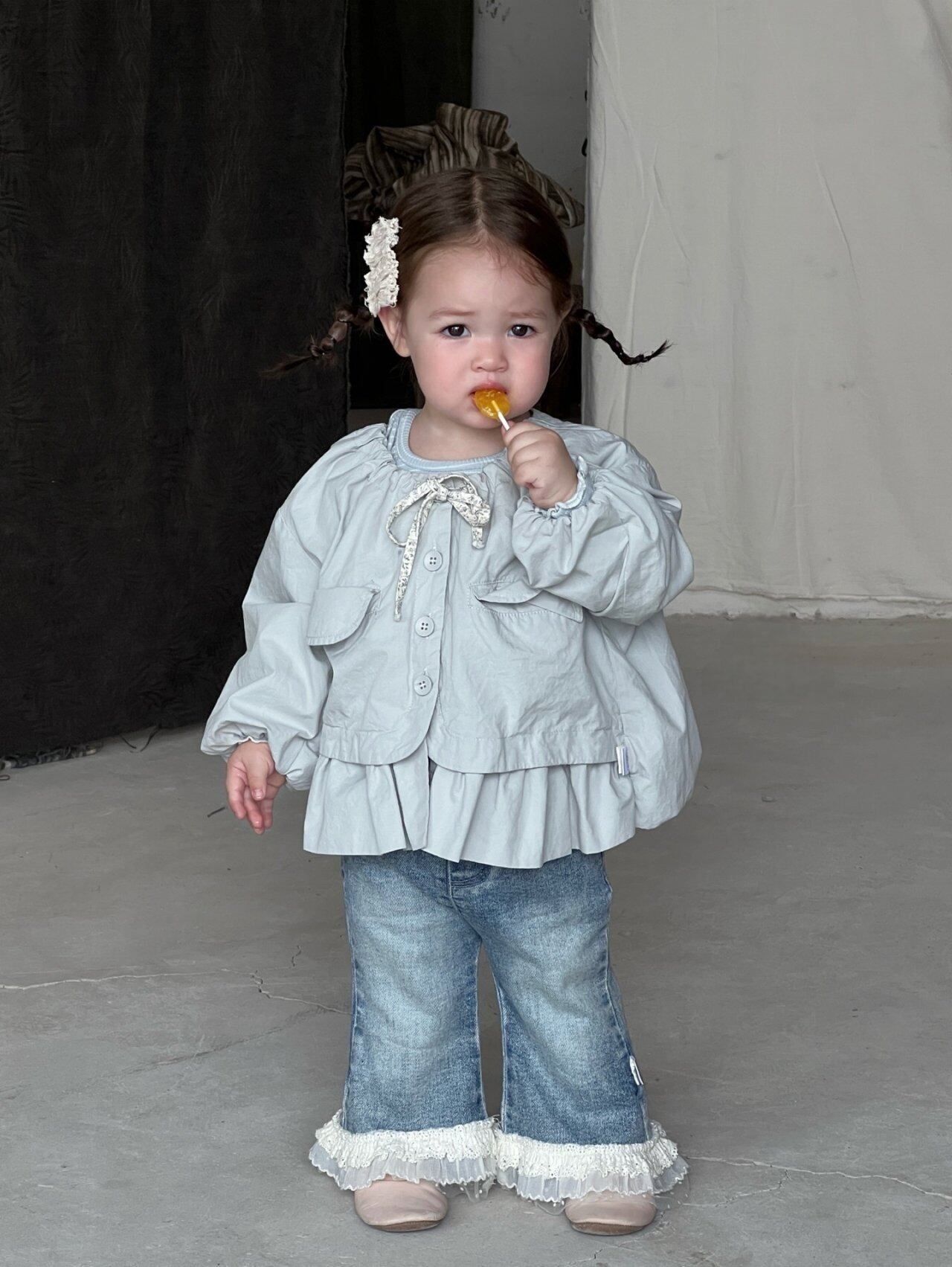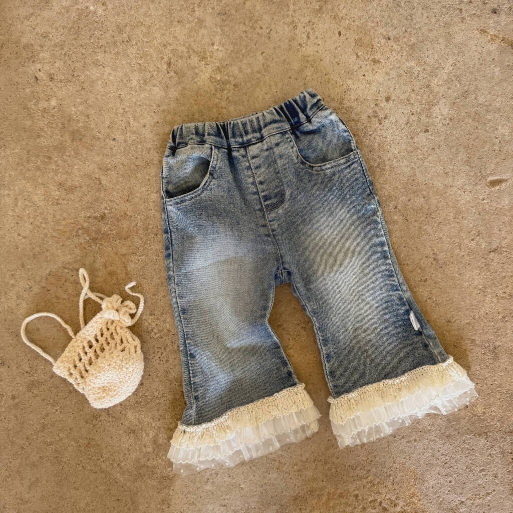 カジュアルなイメージのデニムですが、裾のレースフリルで女の子らしさ満点◎