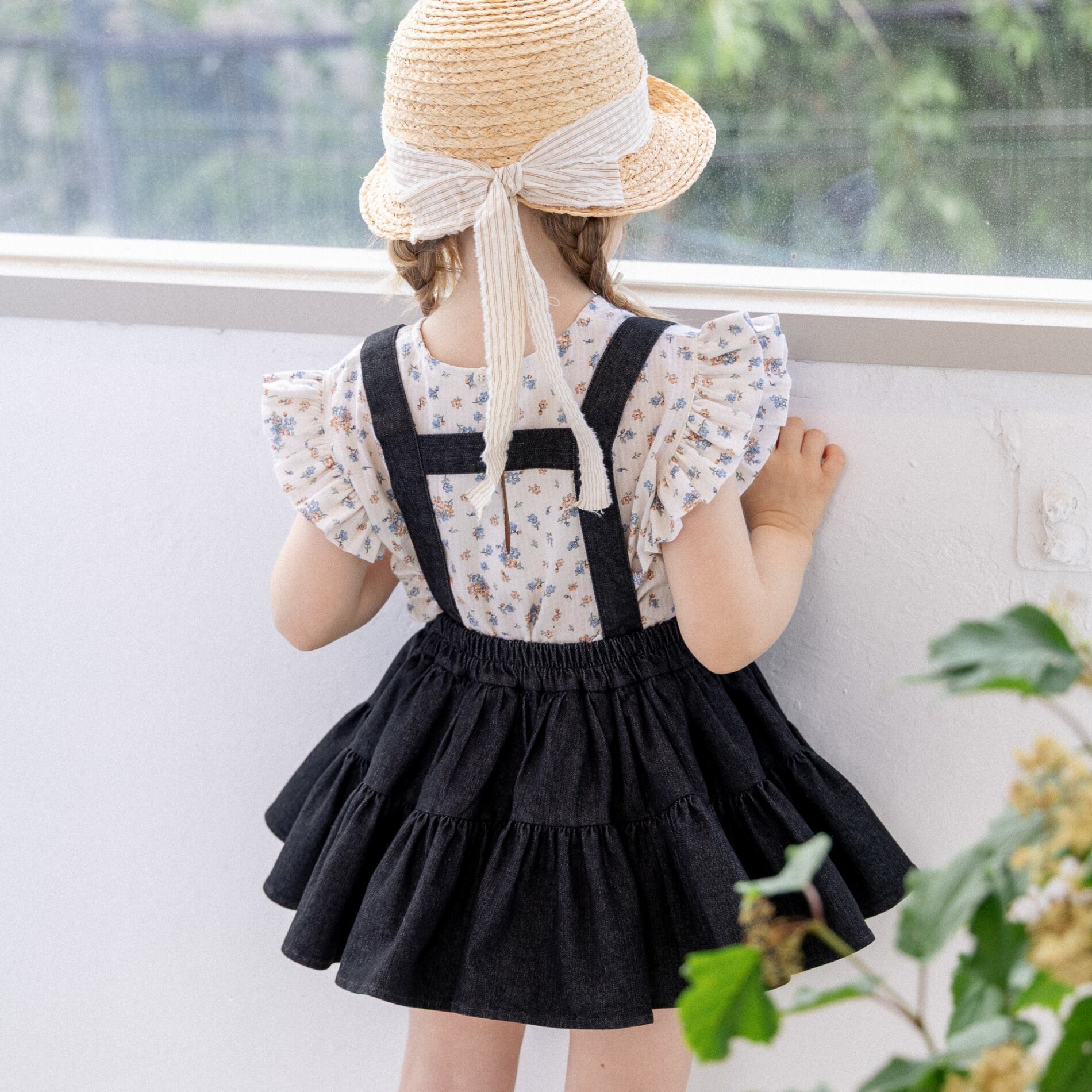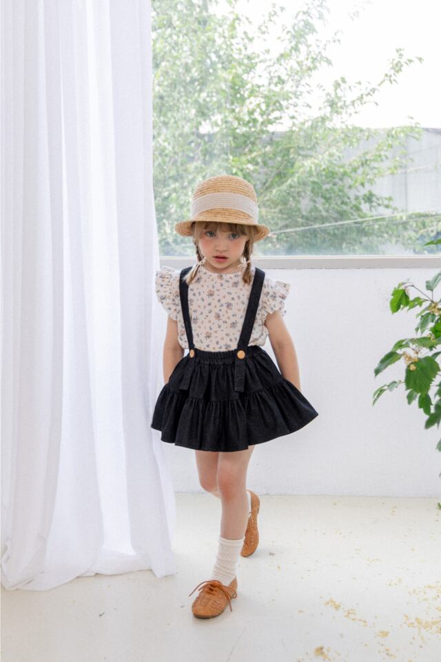 サスペンダータイプですが、ボタンで取り外しができるのでスカートとしてもご着用できます。
